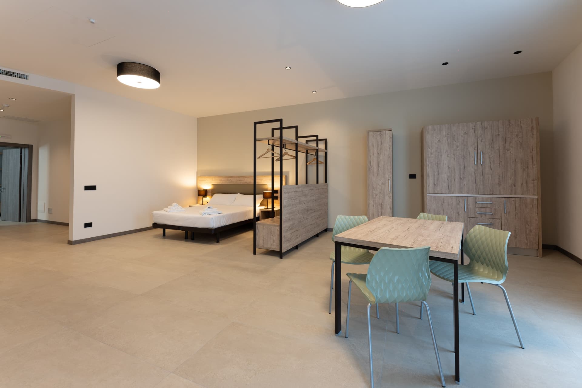 Questo appartamento dispone di un letto matrimoniale e un divano trasformabile in letto singolo o doppio, oltre ad una cucina completa di utensili, un’ampia scrivania e un bagno privato. La posizione strategica della struttura è perfetta per chi desidera sentirsi a casa tra un meeting e l’altro, o per chi vuole scoprire i sapori autentici dell’Emilia in buona compagnia, tra una visita alla Motor Valley e una degustazione delle specialità della zona.
